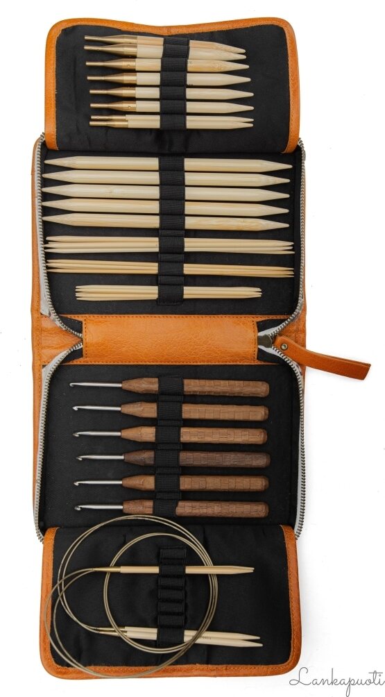 Effi-virkkuukoukkukotelo on sekä käytännöllinen että koristeellinen. Kotelo on käsintehty aidosta, laadukkaasta nahasta, joka vain kaunistuu ajan myötä. Hienojen yksityiskohtien ja käytännöllisten taskujen ansiosta Effi helpottaa tärkeiden tavaroiden kuljettamista mukana. Neulakotelo sulkeutuu käytännöllisellä vetoketjulla ja sitä käytetään neulepuikkojen, sukkapuikkojen, pyöröpuikkojen, virkkuukoukkujen, kirjontatyökalujen ja/tai vaihdettavien neulepuikkojen säilyttämiseen. Lisäksi sitä voidaan käyttää myös penaalikotelona.