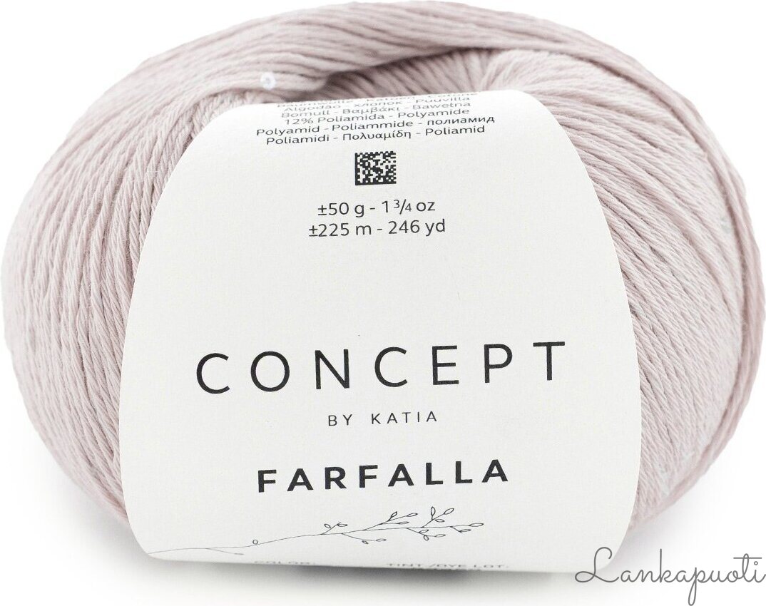 Lisää vaatteisiisi tyylikästä ilmettä Concept Farfallalla, mikropaljeteilla koristellulla puuvillalangalla, joka antaa hienovaraista kiiltoa jokaiseen luomukseen. Poikkeuksellisen pehmeä ja monipuolinen lanka sopii erinomaisesti kesän tyylikkäimpien vaatteiden neulomiseen tai virkkaamiseen. Nauti tyylikkäästä työskentelystä ja loista luonnonkuiduilla!