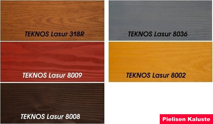 Värjätyt värit ovat 2 kertaa pintakäsitelty (Teknos Lasur 318R tai Teknos Lasur 8036)