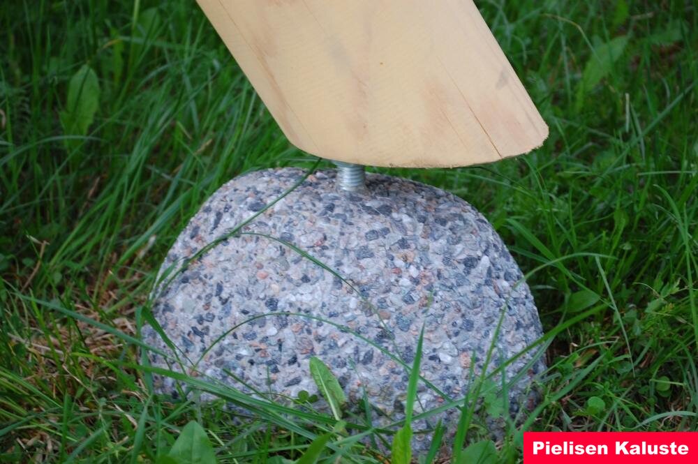 4 betonijalkaa, lautakatto tai huopakaton aluslaudoitus, harjan tukiraudat 2kpl, koukut keinun pysäyttämistä varten 2kpl ja 8 kpl taotut tulpat.
