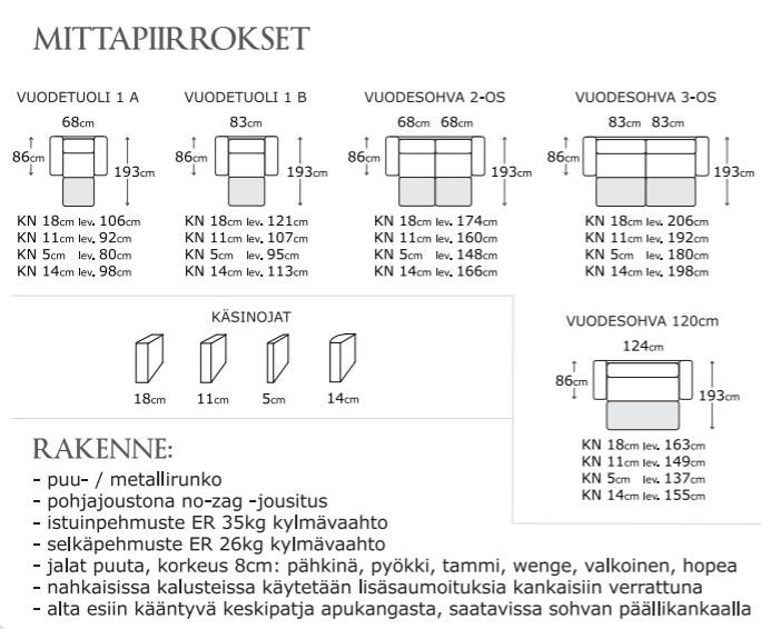 Suomessa valmistettu laadukas Lepo-vuodesohva on todella mukava istua sekä nukkua. Sopii niin vierashuoneeseen kuin olohuoneen sohvaksikin. Kätevä ja helppokäyttöinen Suomessa valmistettu mekanismi. Voit tarpeen mukaan avata sohvasta yhden tai kahden nukuttavan vuoteen.